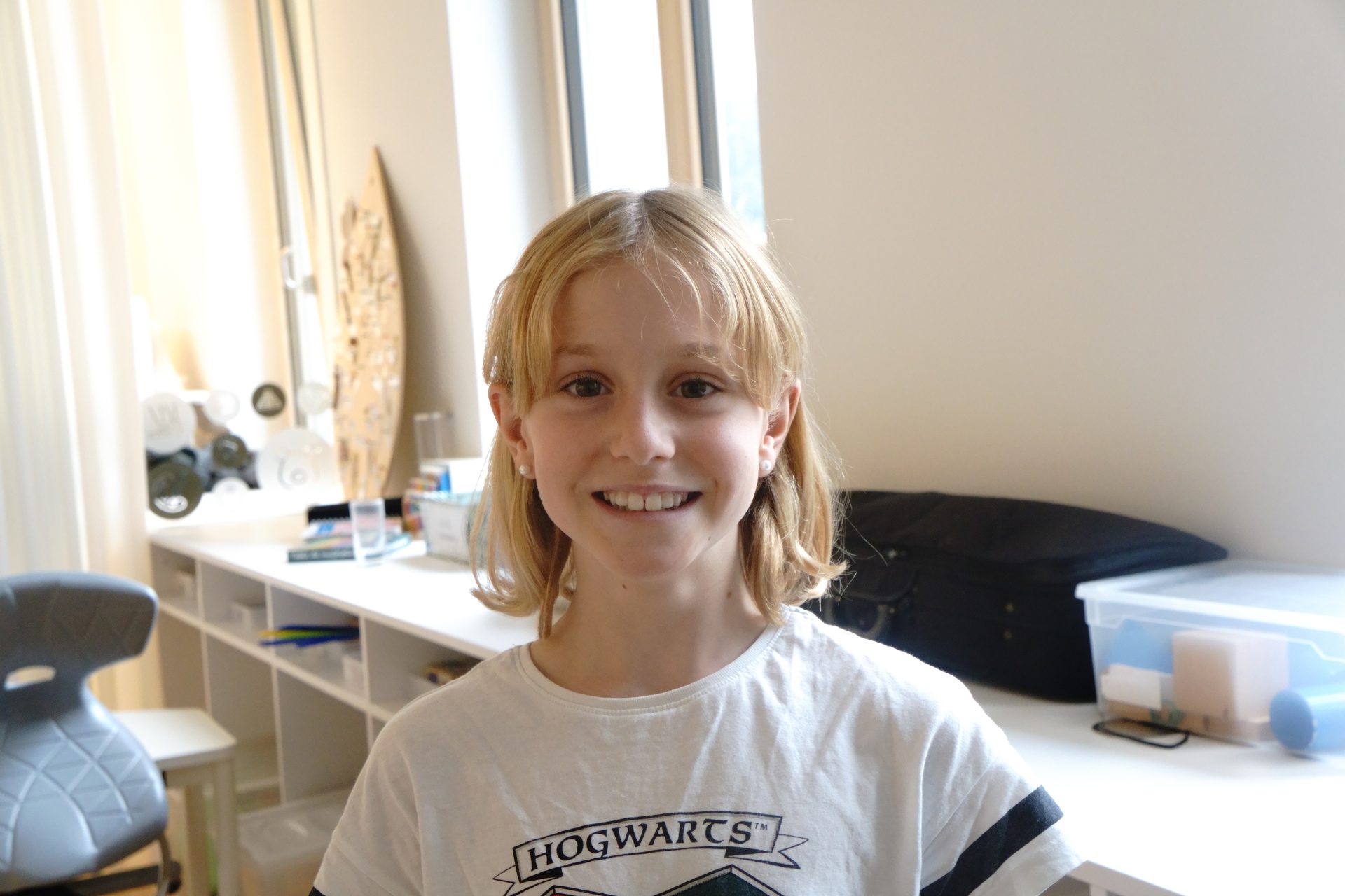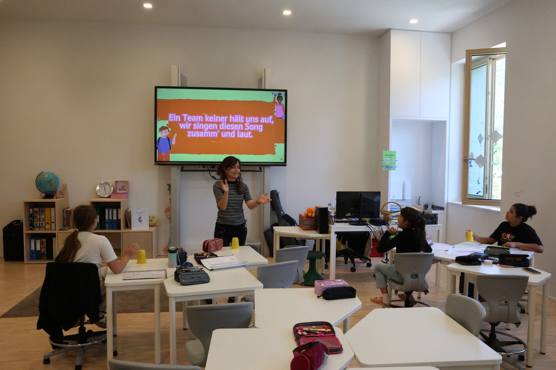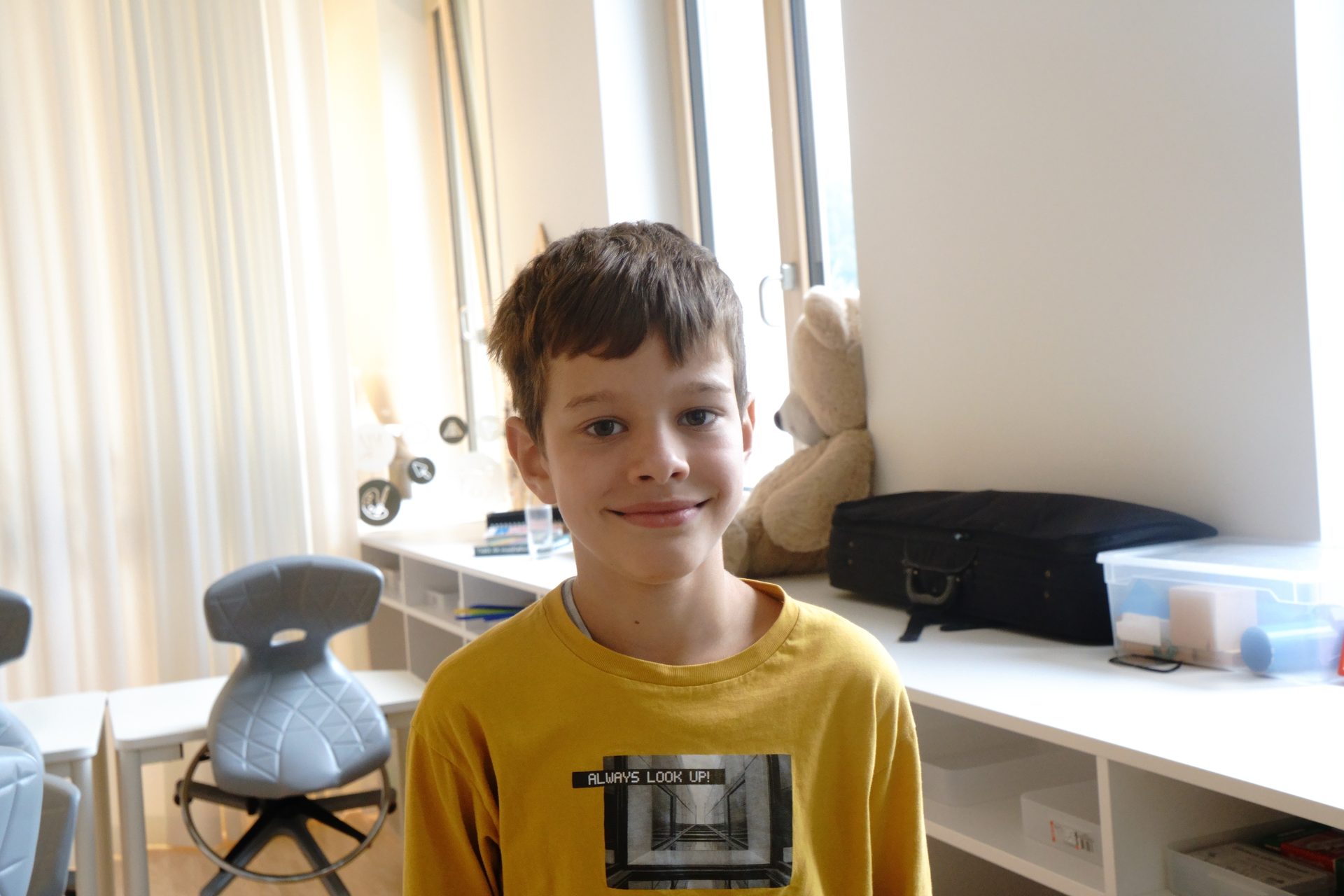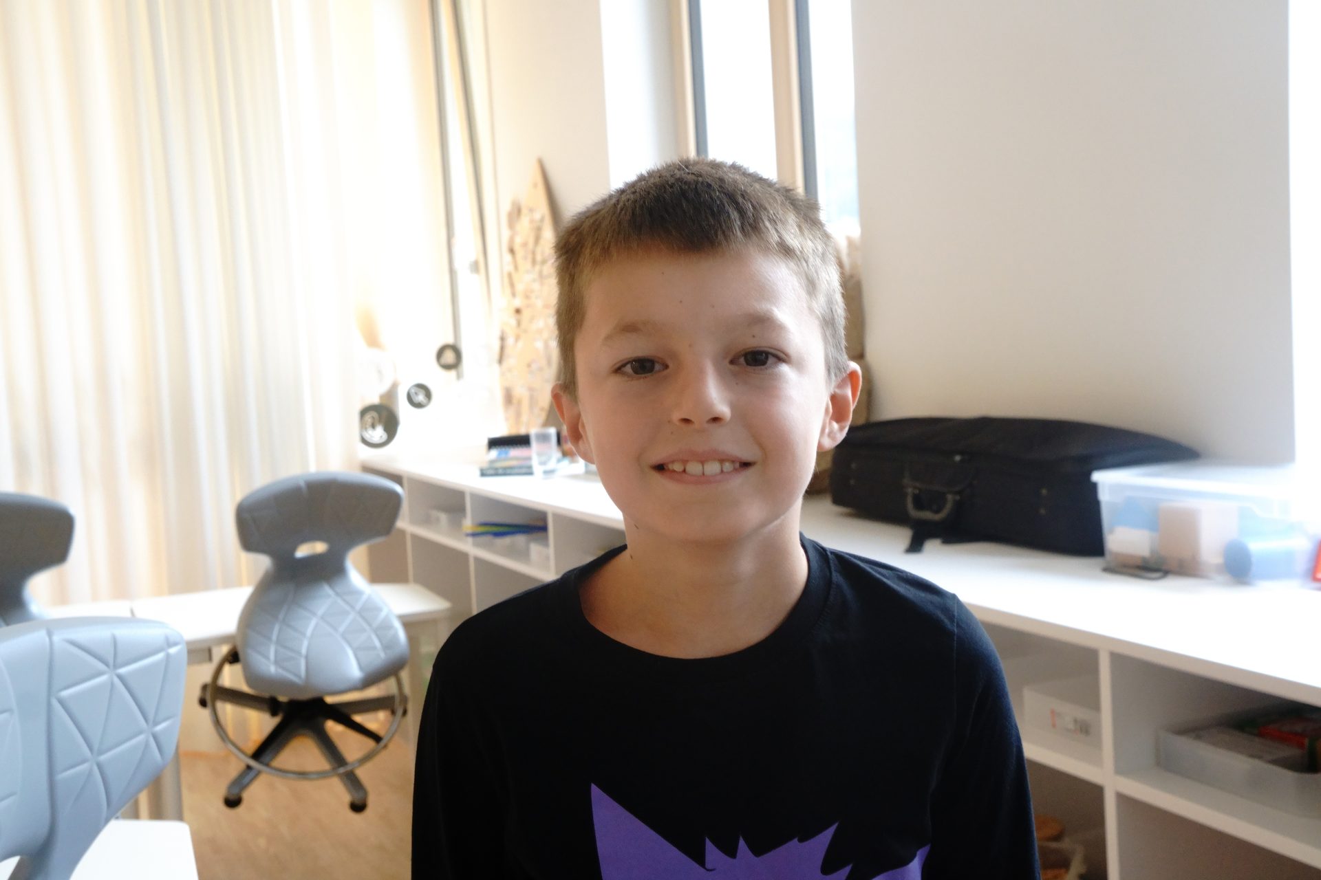 Die neue Schule gefällt mir gut, vor allem die Drehstühle und die Tische, weil man die verstellen kann.