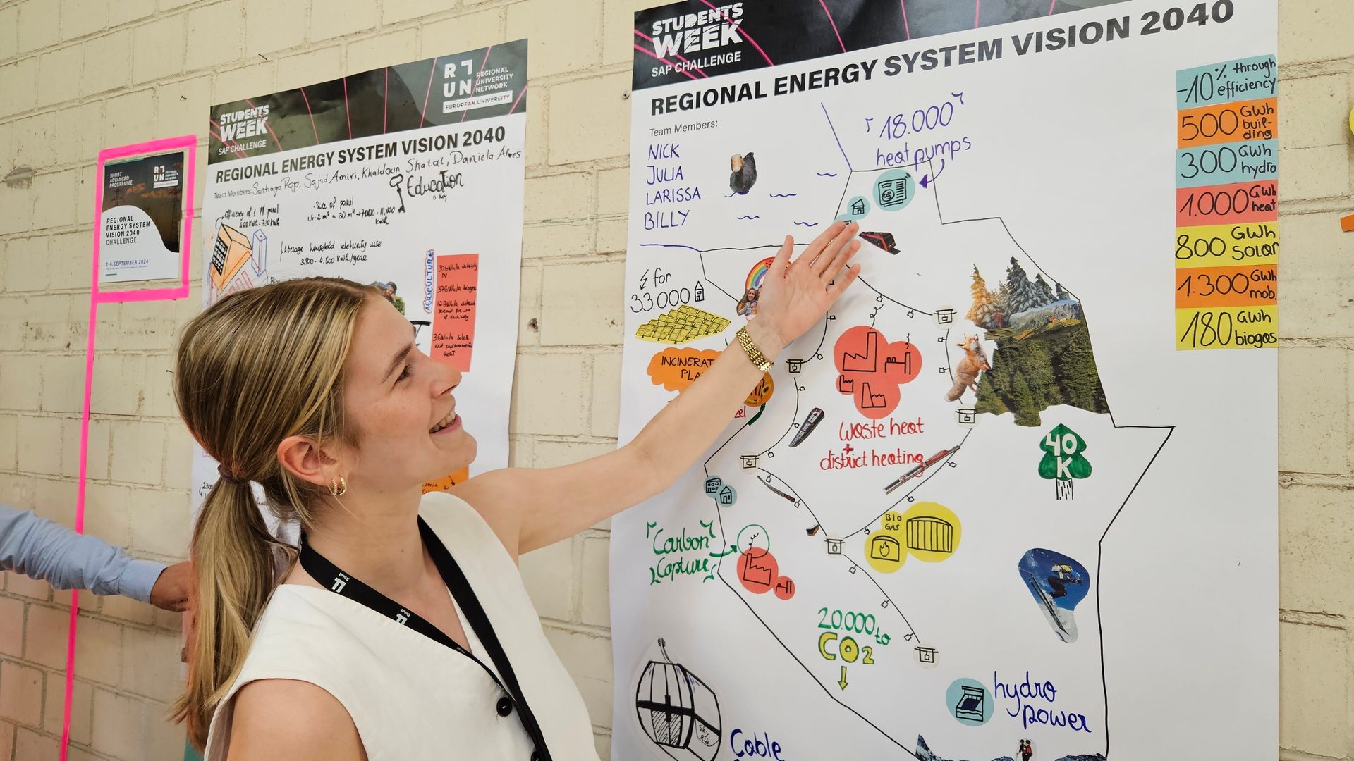 Anfang September ist Dornbirn der Treffpunkt der Hochschulallianz: In sogenannten SAPs (Short Advanced Programme) erarbeiten alle Teilnehmenden Ideen und Konzepte zu den unterschiedlichen Themen. Julia und ihr Team widmen sich dem Thema „Regional Energy Systems – Vision 2040“. Kurz gesagt: Sie tüfteln daran, wie Vorarlberg im Jahr 2040 CO2-neutral sein kann.