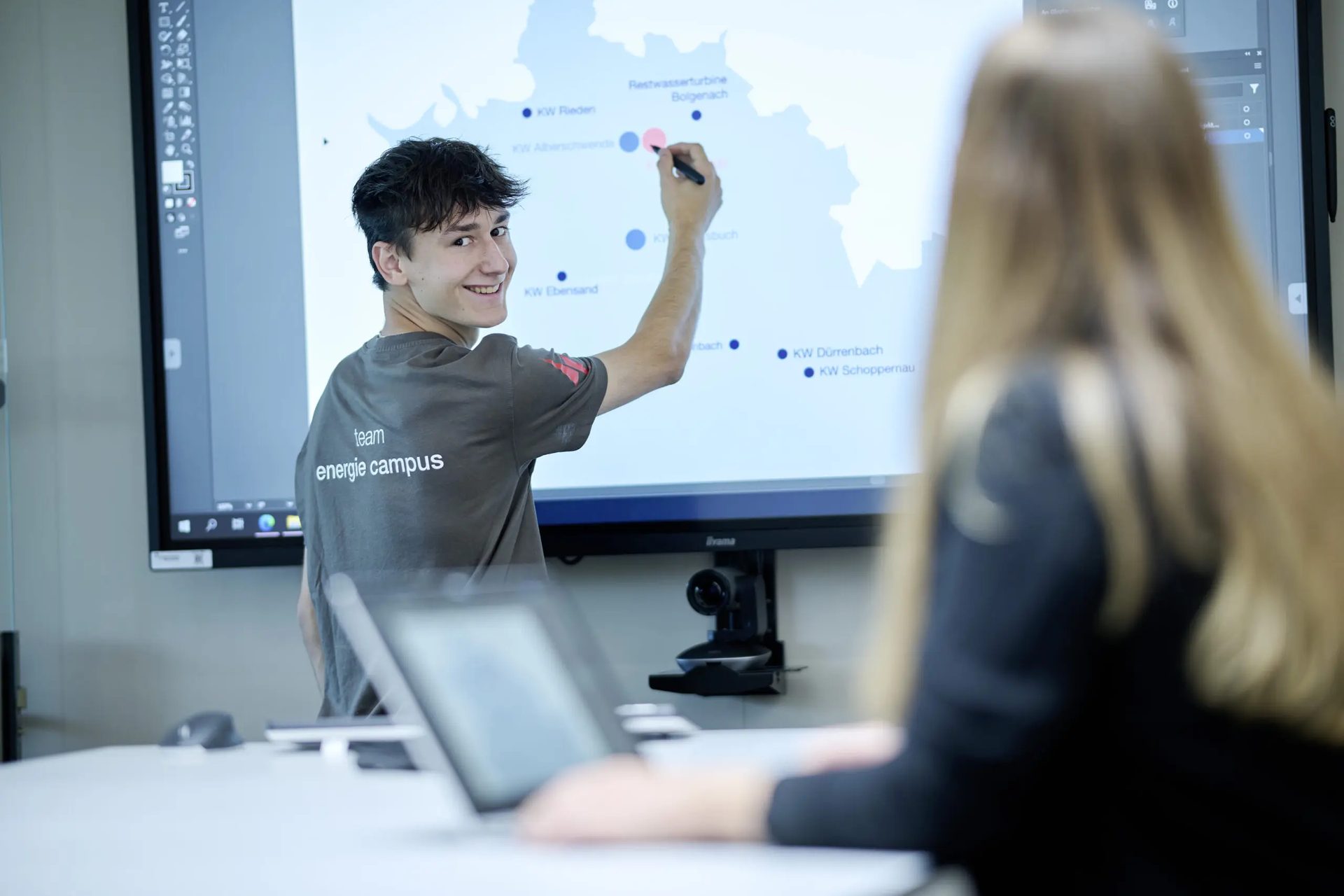 Im energie campus lernen sie, wie man Stromleitungen richtig verlegt, wie eine Wärmepumpe funktioniert oder was ein E-Commerce-Profi eigentlich macht. Besonders spannend finden sie die Coding-Station, wo ein Lehrling ihnen zeigt, wie eine App entsteht – Schritt für Schritt, direkt vor ihren Augen. Und bei der Geoinformationstechnik darf Felix sogar selbst einen digitalen Plan aufrufen: „So sieht Vorarlberg von oben aus?“, fragt er begeistert.