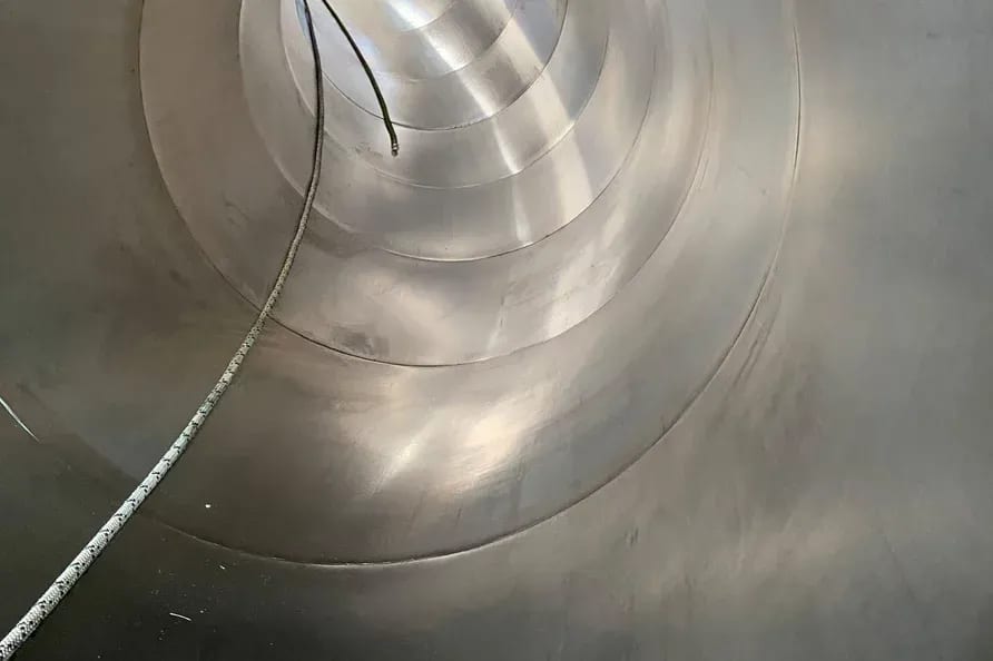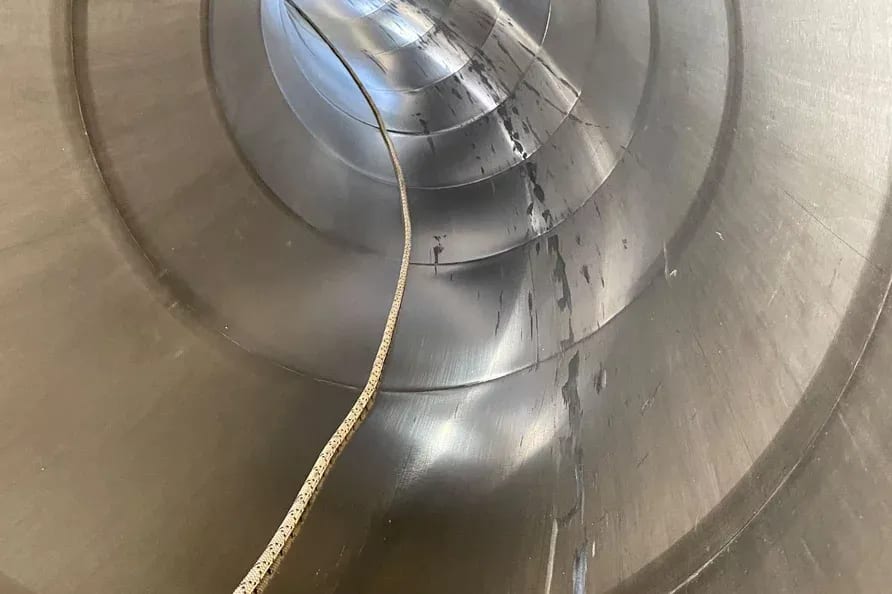Felix staunt: „Und ihr klettert da rein?“ – „Genau“, sagt der zweite Mann, der sich als Mathias vorstellt. „Wir seilen uns mit Gurten ab und putzen die Rutsche von oben bis unten. Zuerst mit Drahtschwämmen, dann mit Putzlappen. Ganz zum Schluss gibt’s sogar eine Probefahrt mit einem Filzteppich.