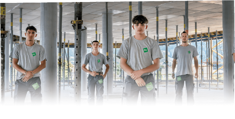 In den vergangenen Jahren konnten wir unser Leistungsspektrum durch Beteiligungen und Übernahmen von Vorarlberger Handwerksbetrieben gezielt erweitern. Dadurch bieten wir neben den klassischen Lehrberufen wie Tiefbauer/in und Hochbauer/in auch Ausbildungen in folgenden Bereichen an: