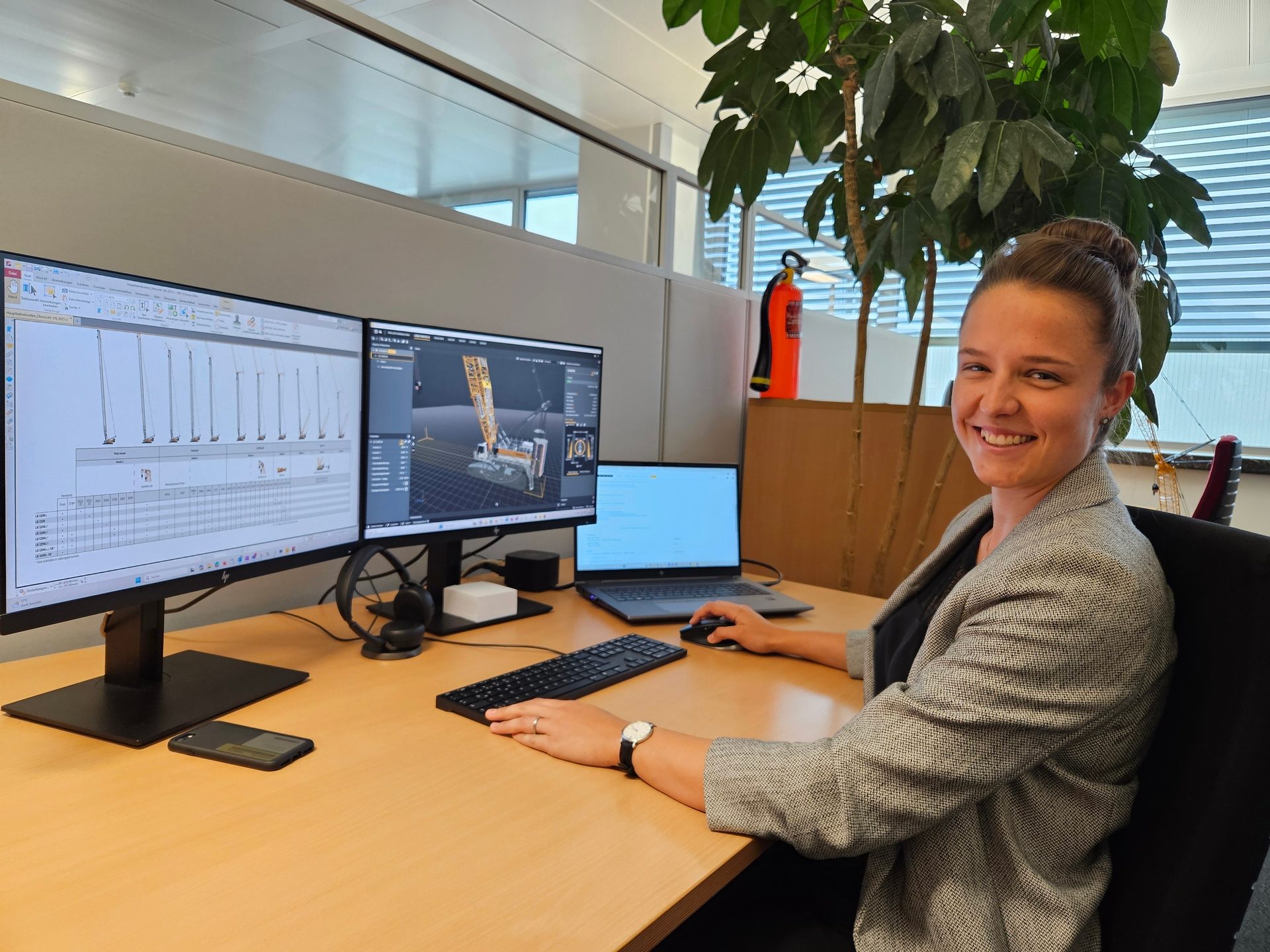 Julia hingegen kam für diesen Job zurück in ihre Heimat. Nach ihren Studien in Wien und Graz, wo sie unter anderem Space Science and Earth from Space studiert hat, sowie ihren bisherigen Jobs bei einem Grazer Start-up und einem Wiener Beratungsunternehmen, wollte sie raus aus der Stadt und ins Grüne. Da wenige Unternehmen außerhalb der Ballungszentren Stellen in diesem Bereich ausgeschrieben hatten, war die Ausschreibung bei Liebherr ein Volltreffer. „Neben der Nähe zur Familie, ist es schön zu wissen, dass ich in meiner Heimat Vorarlberg etwas bewirken kann.“