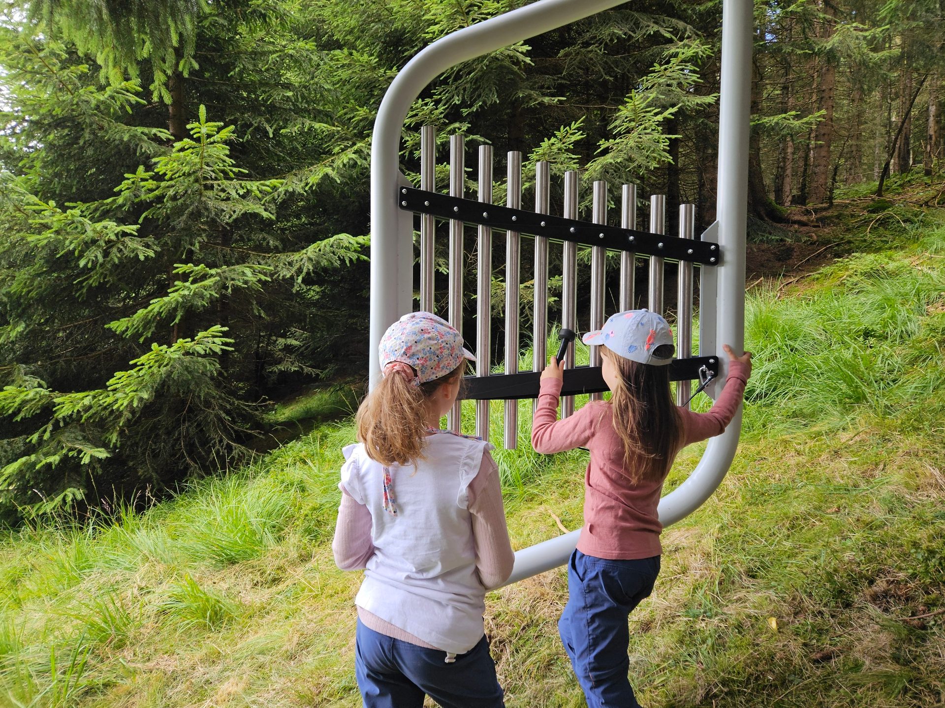 - Linda und Theresa begeben sich mit ihren Eltern am Klangberg in Laterns auf eine Entdeckungsreise voller Waldklänge und Naturwissen.