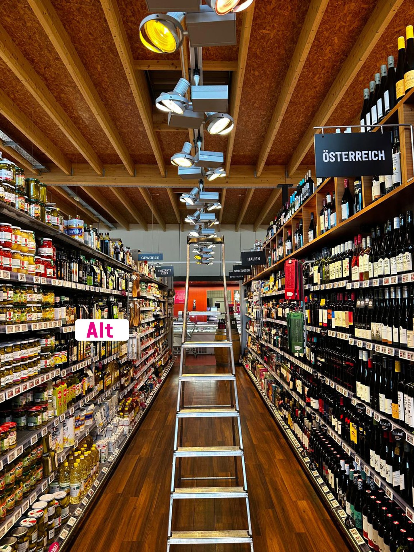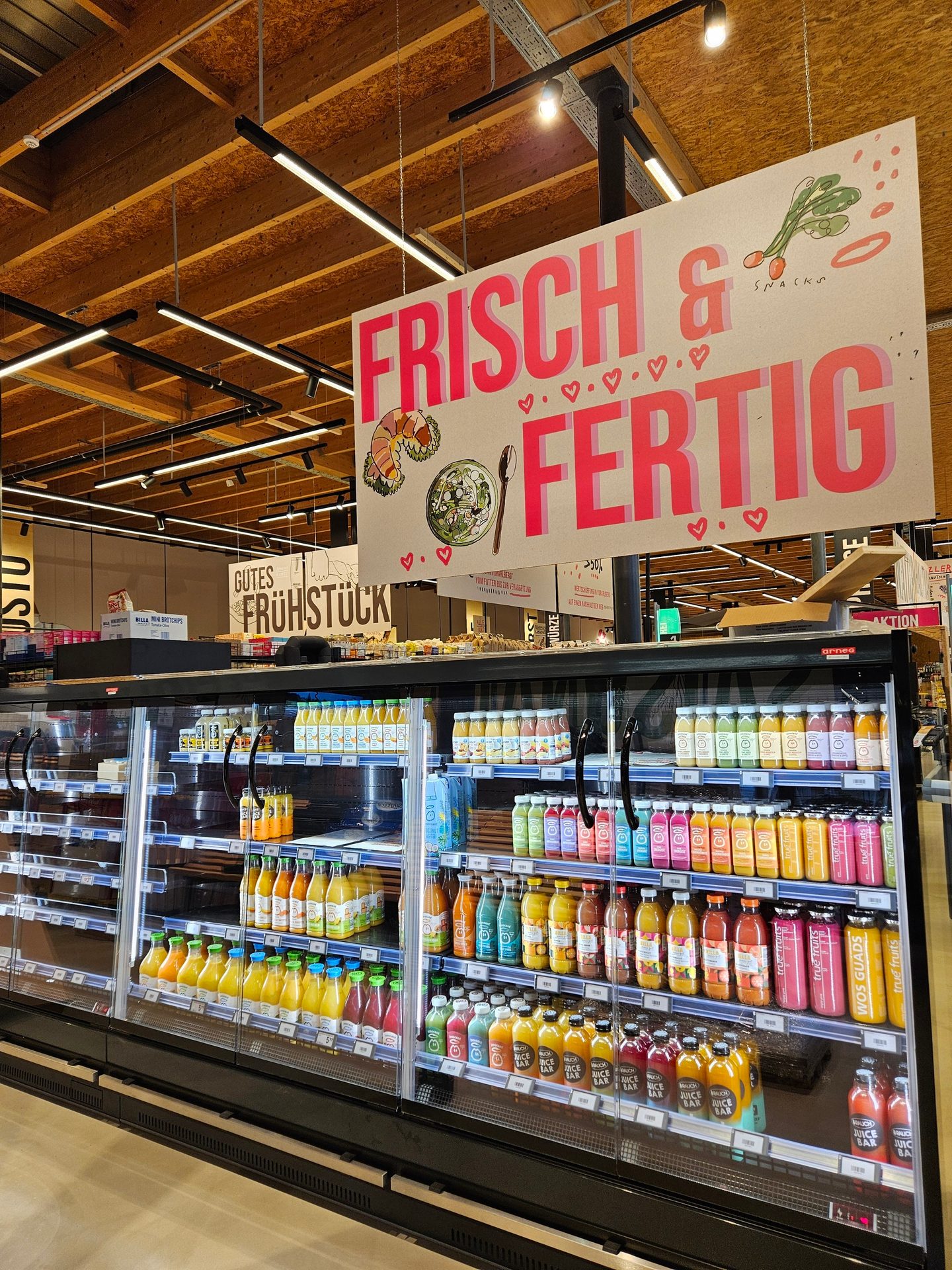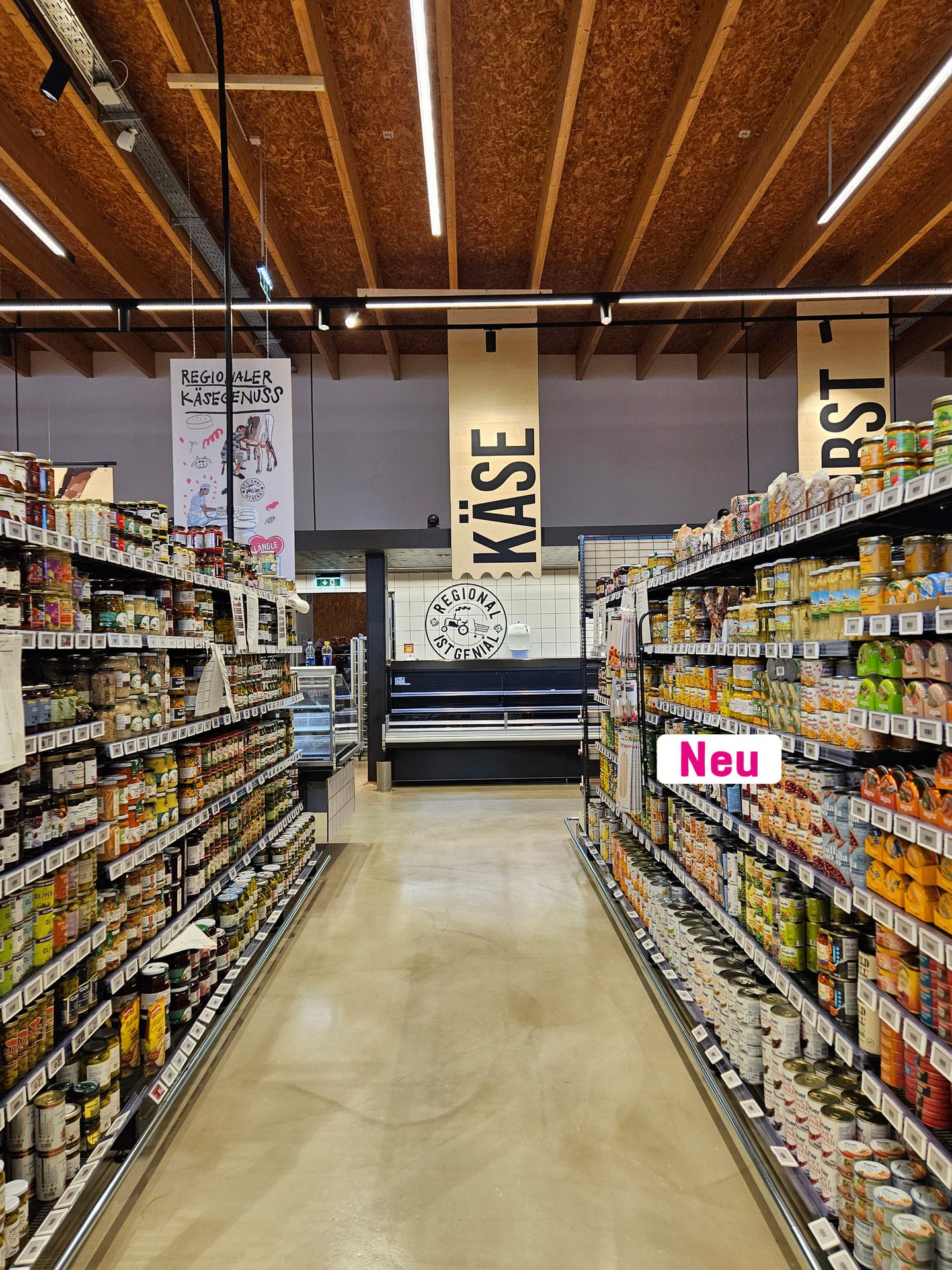 „Der helle Boden, die niedrigen Regale und ein durchdachtes Lichtkonzept schaffen Raum zum Atmen und zum Entdecken. Vor allem aber wirkt der neue Markt moderner, freundlicher und übersichtlicher.“ – Doris