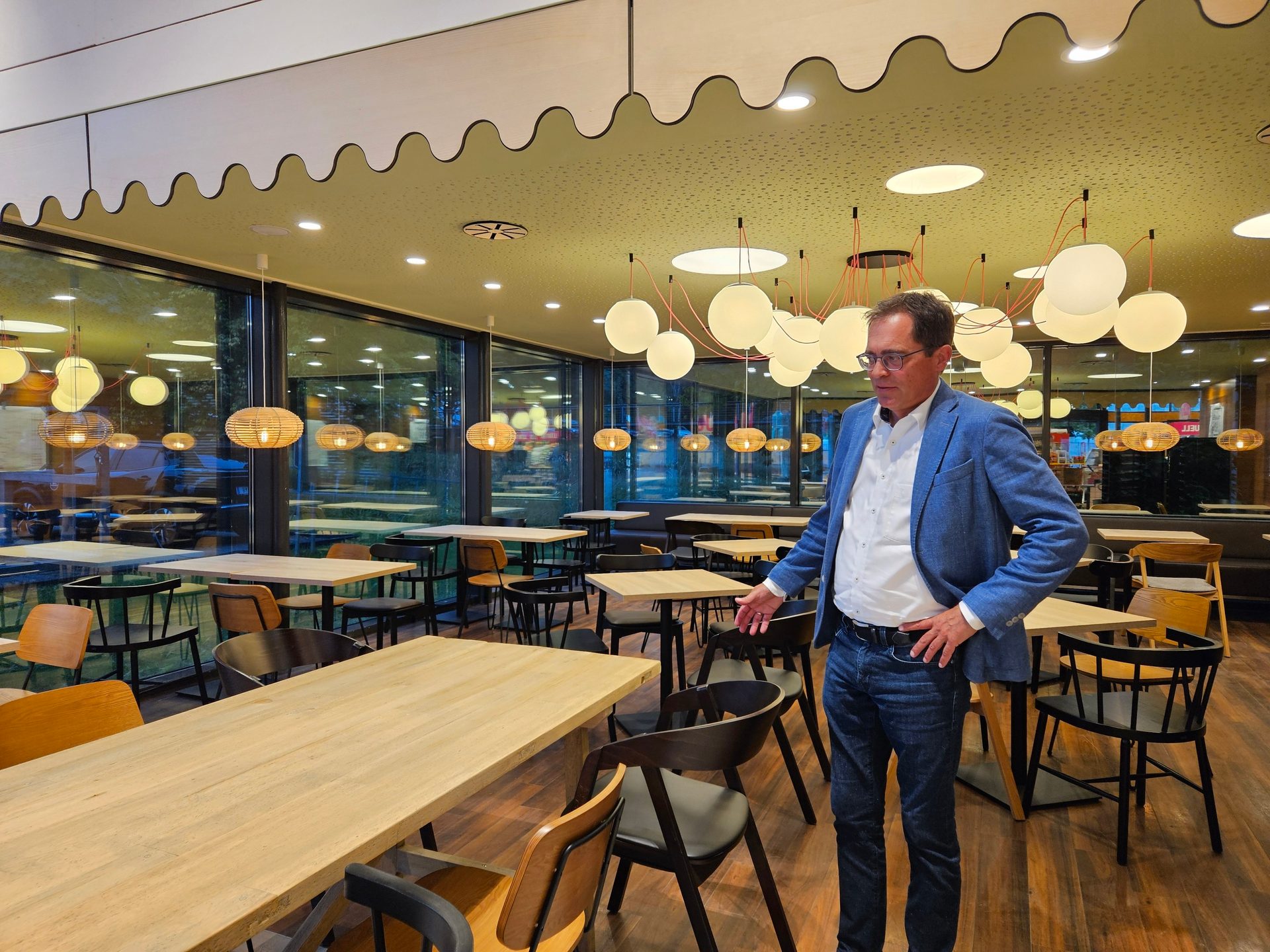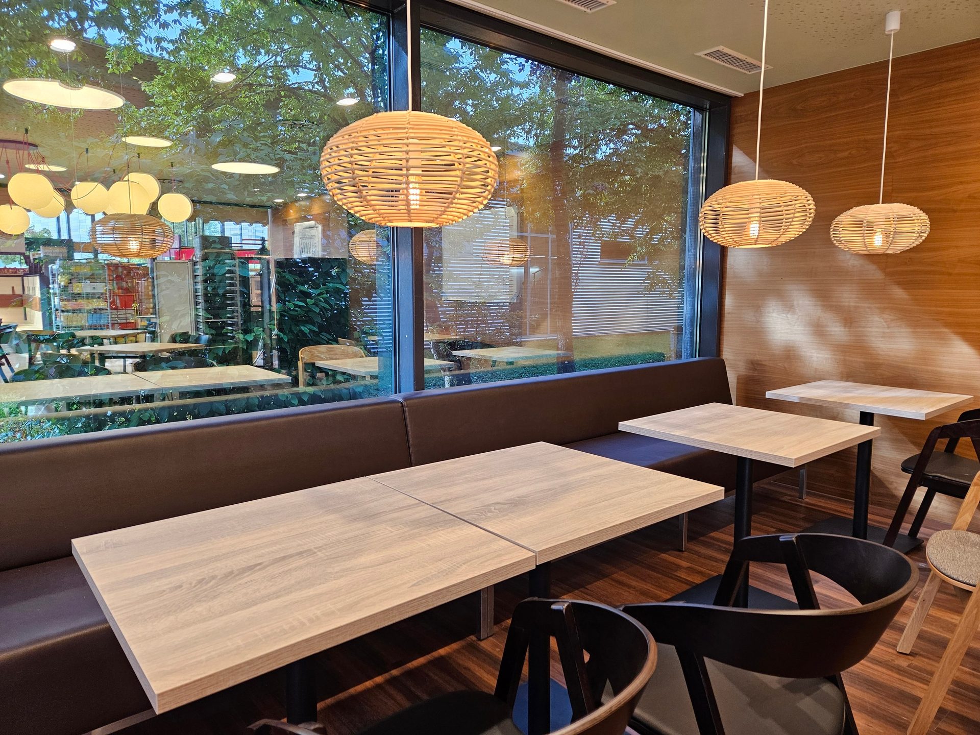 - Das neue Gusto wurde komplett neu gedacht: gemütliche Atmosphäre, mehr Sitzplätze, Selbstbedienungs-Kaffeemaschine und ein langer Holztisch als Herzstück.